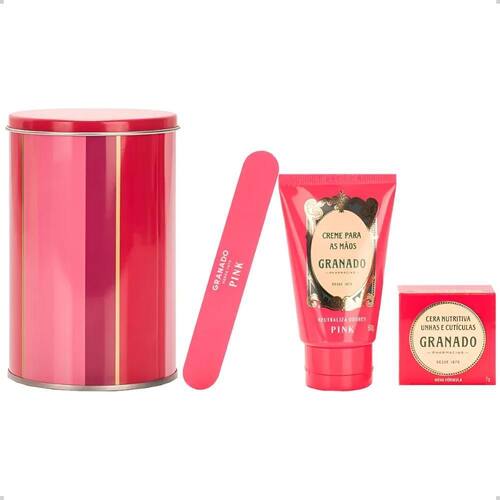 Kit trio essencial para mãos e unhas pink granado creme cera O trio essencial é a combinação ideal para o cuidado e hidratação das mãos e unhas: ele vem com um creme para mãos, uma cera nutritiva e uma lixa granado. O creme mãos pink, além de hidratar e evitar o ressecamento das mãos, possui ação anti-odor e é eficaz em neutralizar cheiros desagradáveis. A cera nutritiva hidrata unhas quebradiças e cutículas ressecadas. Ela pode ser utilizada em cima do esmalte e é aconselhado utilizar diariamente, duas a três vezes ao dia. Os produtos acompanham uma lata ilustrada com a nova estampa vibrante de pink, podendo ser Utilizado como uma caixa organizadora, além de ser um presente ideal para quem ama cuidar das unhas. Livres de corantes, parabenos e ingredientes de origem animal. Produtos não testados em animais. Especificações técnicas Marca: granado Modelo: trio essencial para mãos pink Conteúdo: 1 creme para mãos, 1 cera nutritiva, 1 lixa, 1 lata Peso líquido: creme 60g, cera 7g Palavras-chave: kit para mãos, trio essencial mãos, trio essencial mãos granado, kit cuidado mãos, creme de mãos, creme mãos granado, creme hidratante mãos, creme de hidratação mãos, creme mão ressecadas, creme de hidratação para mãos, creme para mãos granado, creme hidratação granado, cera nutritiva, cera nutritiva granado, cera nutritiva unha, cera nutritiva para unhas, cera nutritiva unha granado, cera nutritiva cutícula, cera unhas quebradiças, cera nutritiva unhas quebradiças, cera nutritiva fortalece unhas, cera fortalecedora unhas, cera nutritiva unhas e cutículas, cera tratamento nutritivo unha, cera hidratante unha, cera hidratante e nutritiva unha, cera unha, granado pink, kit unhas granado, kit unhas granado pink. Kit contém: 1un lixa, 1un creme para mãos, 1un cera nutritiva unhas e cutículas.