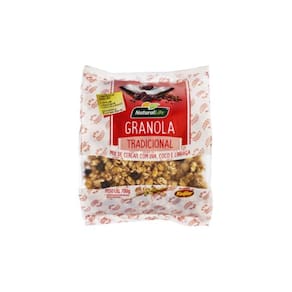 Granola tradicional kodilar 700g a versão tradicional possui mix de flocos e cereais, além de coco, linhaça e uva passa. Fornece energia e fibras para o café da manhã ou lanches intermediários. Combina com iogurte natural, salada de frutas, mingau de aveia, açaí e sorvete. ingredientes aveia em flocos, flocos de milho, flocos mix trigo, arroz, aveia, milho e cevada , flocos de arroz, açúcar mascavo, uva-passa, extrato de malte, açúcar invertido, coco, farelo de trigo, , semente de linhaça marrom, semente de gergelim, antioxidante natural extrato de alecrim , acidulante ácido cítrico e aromatizante sintético idêntico ao natural. Contém glúten. alérgicos: contém aveia, cevada, malte e derivados de trigo e de soja. Pode conter amendoim, castanha-do-pará, castanha-de-caju, noz, pecã, amêndoa, macadâmia, avelã, pistache, pinoli e leite. informação nutricional porções por embalagem: cerca de 17 porção 40 g xícara 100g 40g %vd Valor energético kcal 364 146 7 carboidratos totais g 65 26 9 açúcares totais g 21 8,3 açúcares adicionados g 14 5,8 12 proteínas g 8,7 3,0 7 gorduras totais g 5,7 2,3 4 gorduras saturadas g 2,0 0,8 4 gorduras trans g 0 0 0 fibra alimentar g 9,3 3,7 15 sódio mg 41 16,4 1 Percentual de valores diários fornecidos pela porção.