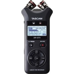 Gravador áudio portátil tascam dr-07x com microfone ajustável Fala, efeitos sonoros e gravação de música Microfones unidirecionais ajustáveis integrados Entrada de microfone/linha de 3,5 mm com alimentação plug-in Afinador, equalizador e reverberação integrados Grava em wav até 96 khz Saída de linha/fone de ouvido de 3,5 mm Funções de gravação automática e pré-gravação Duração da bateria até 17,5 horas Suporta cartões microsdxc de até 128 gb Filtro de nível automático, limitador e corte baixo Para aplicações de fala, efeitos sonoros e gravação de música , o gravador de mão portátil tascam dr-07x é capaz de capturar duas faixas de áudio de alta resolução sem a necessidade de microfones externos. Seus microfones condensadores unidirecionais integrados podem ser configurados em uma posição a-b para um efeito estéreo espaçoso ou em uma posição x-y para uma imagem estéreo compacta com diferenças mínimas de fase. Igualmente adequado como um dispositivo portátil ou em configurações montadas em suporte ou câmera, o dr-07x pode lidar com qualquer coisa, desde sessões de samples e recitais até entrevistas e podcasts. Métodos de alimentação flexíveis - baterias, alimentação de barramento usb ou um adaptador ca - tornam o dr-07x adequado para gravação em movimento, gravações de vídeo durante todo o dia e produção de áudio baseada em computador. Precisa conectar um microfone de lapela ou um mixer externo A entrada mini-jack de 3,5 mm do dr-07x acomoda sinais de nível de linha ou microfone e pode fornecer alimentação de plug-in, se necessário. Quer você use os microfones integrados ou uma fonte externa, os modos selecionáveis, como redução de pico, limitação e nível automático, oferecem opções para obter gravações limpas e sem distorção. Marca: Não Informado