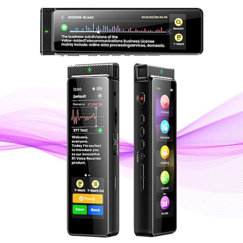 IMPORTANTE: Se for um produto elétrico, ele pode ser compatível com uma tomada de 110 volts. Se utilizado fora dos Estados Unidos, pode ser necessário um conversor de voltagem para garantir a operação adequada. Verifique se o produto que você está comprando é elétrico antes de considerar essas informações. Gravador de voz digital de 72 GB com reprodução - Gravador ativado por voz com tela de toque completa NekSide com tela LED HD e transcrição STT inteligente, dispositivo de gravação para palestra e entrevista -?Gravação de alta qualidade - Sensibilidade ajustável e cancelamento de ruído?O gravador digital NekSide está equipado com microfones duplos de sensibilidade inteligente. O IC de gravação profissional, combinado com a tecnologia inteligente de redução de ruído DSP e RTC, pode fornecer uma experiência de gravação de alta qualidade. Perfeito para jornalistas, estudantes, cantores, escritores, profissionais, advogados, atores. -?Ajuste de gravação em vários modos?O gravador NekSide 2024 oferece vários modos de gravação, utilizando diferentes configurações de gravação para atender às necessidades de vários cenários de gravação, 5 modos, incluindo modo geral, entrevista, conferência, fala e bolso, cenários diferentes para obter a qualidade de gravação mais adequada. Além disso, oferece dois métodos de gravação automática: gravação programada e gravação automática para simplificar seu trabalho. -?Fala para texto?O NekSide, este novo gravador, possui uma função de fala para texto inteligente offline integrada, que permite que você obtenha transcrição instantânea durante a gravação. Pode ser muito útil como intérprete qualificado, mesmo quando você o transporta para o exterior ou quando vai a outros lugares para recepção e diplomacia. Além disso, você pode exportar documentos STT para maximizar a eficiência do trabalho. -?Backup automático opcional e com pouca bateria?Este gravador digital com tela sensível ao toque modelo R1 permite que você opte por fazer backup de suas gravações ao salvá-las ou desligá-las automaticamente para fazer backup de seus arquivos de gravação quando a bateria estiver fraca para evitar perda de arquivos devido a falhas na mídia de armazenamento. A função de backup automático está desativada por padrão; é recomendável ler o manual ou vincular a operação do computador para habilitar essa função para gravações importantes. -?Controle de tela de toque?O gravador 2024 R1 é equipado com uma tela de toque de alta definição de 3,69 polegadas, que fornece controle total da tela de toque, mantendo as funções tradicionais dos botões. Isso satisfaz muito as diferentes preferências de controle e você não precisa mais se preocupar com o toque acidental dos botões, causando interrupções na gravação; em resumo, ele pode funcionar completamente como um smartphone pequeno. -?Cartão de memória TF embutido de 8 GB+64 GB?O gravador R1 carrega 8 GB de memória interna e um cartão SD externo é o principal meio de armazenamento do dispositivo de gravação R1. O R1 suporta até 1 TB de armazenamento externo expansível, o que satisfaz muito a necessidade de gravação de longo prazo e armazenamento de alta capacidade. Um cartão de memória TF de 64 GB está incluído no pacote, poderoso o suficiente para suportar a retenção de até 9600 horas de arquivos. -?Bateria de forte resistência?Este gravador de voz ativado por voz tem uma bateria de íon de lítio embutida de 1100mAh com uma solução de baixo consumo de energia para uma vida útil extra longa. Levando apenas 1,5 horas para carregar totalmente, ele garante até 72 horas de gravação contínua sem cobrança frequente, ideal para viagens de negócios ou longas reuniões, apresentações e entrevistas. -?Proteção de privacidade e presente ideal?O gravador portátil R1 oferece uma forte proteção por senha de 6 dígitos, ao contrário de outros gravadores que não impedem que outras pessoas visualizem o dispositivo. Ele protege sua privacidade ou propriedade intelectual ao impedir qualquer acesso não autorizado. Este gravador que grava enquanto escreve é o presente perfeito para professores, estudantes, advogados e escritores para ajudá-los a serem mais produtivos ao longo do dia.