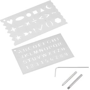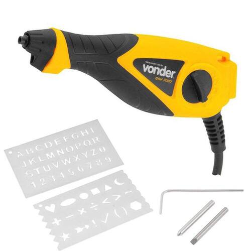1 Gravador elétrico, acompanha: 1 placa (algarismo e alfabeto), 1 placa (símbolos), 2 pontas e 1 chave allen