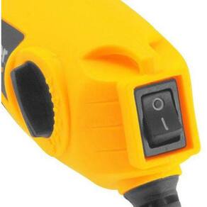 Indicado para gravação ou decoração em metais, vidros, pedras, plásticos rígidos e madeiras. Possui design leve e compacto, proporcionando uso confortável e alto desempenho em gravações de precisão. Conta com ajuste de curso de 9 posições que regula a profundidade de gravação, além de luz de LED que permite a operação mesmo em áreas escuras. Especificações: Pulso por minuto: 7.100 Tensão: 220v Frequência: 60 Hz Acompanha: 2 Placa Letras, números e símbolos 2 Pontas 1 Chave Allen Ean: 7893946528362
