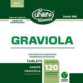 A Graviola da Unilife é um suplemento alimentar em comprimidos mastigáveis com sabor natural da própria fruta. A graviola é uma fruta tropical conhecida por conter compostos como vitaminas, minerais e antioxidantes naturalmente presentes em sua polpa e folhas. Esse suplemento é uma alternativa prática para quem deseja incluir a graviola na alimentação de maneira conveniente. Livre de lactose e não contém glúten. - Modo de ingestão Sugere-se a degustação de 1 comprimido 2 vezes ao dia antes das refeições.
