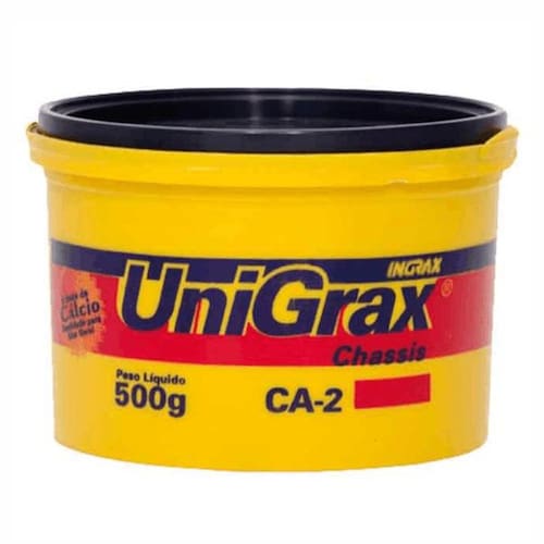 O produto: Unigrax ca é uma graxa à base de cálcio, hidrorepelente, fabricada com óleo lubrificante de alta viscosidade, tendo uma cor castanho escura e grande adesividade. Recomendada para lubrificação das articulações de chassis de caminhões, automóveis, tratores, motocicletas, máquinas agrícolas, mancais de deslizamento e sempre que necessite de uma graxa para trabalhos em temperaturas não superiores a 70ºc. É também utilizada em indústrias pesadas, tais como mineração, laminação de aço e metais não ferrosos, manufatura de produtos químicos e usinagem de metais.
