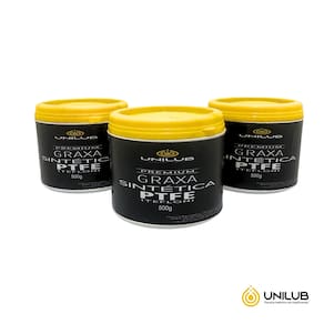 Graxa PTFE é uma novidade agora em tamanhos maiores para sua maior comodidade. PERFEITA PARA ALTAS TEMPERATURAS E COM TEFLON Descrição: Graxa sintética a base de óleo sintético PAO com PTFE e espessante Complexo de Lítio, resistente a água e vapor d’água, permite proteção antidesgate elevada e anticorrosiva, para pontos com alta temperatura. Aplicações: Particularmente indicada nas aplicações em temperaturas elevadas. Com total repelência à água, solventes, vapores e agentes químicos. Seu ponto de evaporação é acima de 280º C. É recomendada em locais com cargas elevadas. Possui elevada aditivação antidesgaste, teflon como Lubrificante de Reserva.