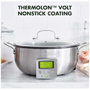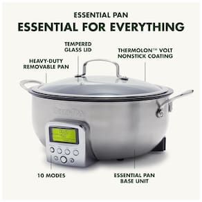 A Frigideira Inteligente Elite Essential é a ferramenta mais versátil em qualquer cozinha. Seja grelhando um bife, aperfeiçoando um ensopado complexo ou simplesmente fazendo arroz, esta frigideira familiar de 5,7 litros oferece espaço para qualquer refeição. Com 10 modos para iniciar cada refeição da maneira certa: Refogar, Molho, Sopa, Cozinhar a Vapor, Cozinhar em Fogo Brando, Manter Aquecido, Grelhar, Cozinhar Arroz Branco, Cozinhar Arroz Integral, Grãos. As laterais altas eliminam respingos e facilitam misturar os ingredientes sem preocupações. O elemento fundido garante aquecimento rápido e uniforme, além da panela removível que pode ser facilmente limpa. A Frigideira Inteligente Essential possui revestimento cerâmico antiaderente saudável especialmente projetado para eletrodomésticos modernos e é livre de PFAS, PFOA, grafite e cádmio. O revolucionário Thermolon Volt, um revestimento cerâmico antiaderente especialmente projetado para resistir ao desconforto dos eletrodomésticos modernos, é resistente, fácil de limpar e torna qualquer refeição mais saudável. Design 10 em 1: Refogar, Molho, Sopa, Cozinhar a Vapor, Cozinhar em Fogo Brando, Manter Aquecido, Grelhar, Cozinhar Arroz Branco, Cozinhar Arroz Integral, Grãos. Livre de Toxinas: Nosso revestimento cerâmico antiaderente exclusivo é livre de PFAS, PFOA, grafite ou cádmio. Capacidade Grande de 6 litros: O design espaçoso oferece muito espaço e é perfeito para grandes grupos, festas ou armazenamento de grandes porções para depois. Elemento Fundido: Aquece rapidamente e uniformemente, eliminando pontos quentes e frios para grelhados rápidos e potentes. Display LCD Fácil de Ler: Um display grande retroiluminado em verde e pré-configurações de um toque facilitam encontrar as configurações certas para sua próxima refeição. Base Resistente a Calor: Mantenha sua bancada e suas mãos seguras do calor. Isolamento Seguro: A carcaça isolada reflete o calor para cozimento rápido e uniforme, enquanto os pés resistentes e antiderrapantes mantêm sua frigideira no lugar. Tampa de Vidro Temperado: Mantenha um olho na sua refeição e veja o sabor se desenvolver. Lavável em Máquina de Lavar Louça: A panela removível é fácil de limpar e pode ser lavada na máquina de lavar louça para sujeiras difíceis.