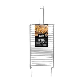 Grelha em Aço Cromado para Assar Pão de Alho. Grelha com cabo em aço cromado, ideal para assar pão de alho. Contém 5 espaços para encaixe perfeito para que o pão de alho não se mova na hora de assar. Fecho com trava para maior segurança e manuseio da sua grelha. Produto de alta durabilidade e fácil higienização.