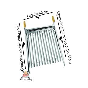 Com esta incrível grelha Argentina da marca Giragrill você consegue coletar a gordura, evitando a formação de labaredas devido ao seu incrível formato de canaletas inclinadas na forma V reduz drasticamente à fumaça na churrasqueira uma vez que a mesma gordura não respinga tanto sob o carvão. É a única grelha que possibilita grelhar vários tipos de alimento ao mesmo tempo, sem misturar os sabores, devido ao seu sistema de canaletas que recolhem a gordura. Feita em AÇO INOX, com cabos de madeira Marfim e design moderno, é muito leve e resistente. Medidas: C 760 mm x L 407 mm x A 46 mm Ean: 07896569201629