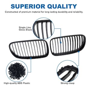 Montagem Série 3 2010-2013 BMW E92 E93 LCI Coupe 320i 328i 335i Especificações Estilo: ripas simples Cor: preto brilhante A embalagem inclui: 2 * grades Material: 100% plástico bruto não reciclado (ABS) - ?Design elegante e elegante?A grade apresenta um design elegante e elegante que melhora a aparência do seu 3 Series LCI Coupe E92 E93. Seu visual elegante e esportivo dá ao seu carro um visual personalizado que se destaca da multidão. - ?Compatibilidade perfeita?Especificamente projetada para caber no BMW Série 3 2010-2013 BMW E92 E93 LCI Coupe 320i 328i 335i, esta grade é a substituição perfeita para sua grade de fábrica desgastada ou danificada. - ?Material durável?Nossa grade E92 E93 é feita de material plástico ABS de alta qualidade que é durável e duradouro. Este material é resistente à corrosão, desbotamento e impactos, garantindo que sua grade permaneça ótima por muitos anos. - ?Fácil de instalar?Nossa grade é projetada para fácil instalação, sem necessidade de perfuração ou modificações. Você pode facilmente substituir sua grade antiga pelo nosso produto em poucos minutos, graças ao processo de instalação simples. - ?Excelente serviço pós-venda?Se você tiver alguma dúvida sobre a grade, antes de comprar, responderemos a você.