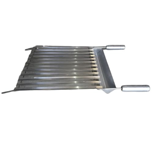 A grelha argentina é constituída por canaletas, normalmente no formato V e possui leve inclinação que evita que a gordura ou sumo da carne entrem em contato com o fogo e cause labaredas. Logo, é possível assar a carne bem próximo ao fogo.