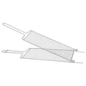 Grelha de aço GALVANIZADO, dobrável miúdo tamanho 21x69cm . A grelha permite que se trabalhe com vários tipos de carnes ao mesmo tempo. Ideal para miúdos além de outros complementos como queijo provolone, pimentão, linguiças, tomates, cebolas e etc? Ela favorece as carnes sem osso, em detrimento das carnes com osso como a costela. Portanto as carnes mais indicadas para a grelha são a picanha, a maminha, o assado de tiras (Tiras muito finas de costela), linguiças, salsichas, chuleta, vazio ou fraldinha e o filé mignon.