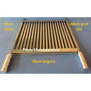 Considerações: a grelha pode ter variação na largura de até 1cm maior. Verifique o espaço do vão de sua churrasqueira antes de comprar, deve ser maior que 55cm largura. Os cabos ultrapassam a largura da grelha por serem robustos, caso eles entrem pra dentro da boca da churrasqueira considerar + 4cm na largura.