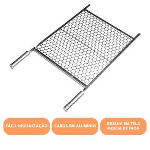 - Grelha plana em tela moeda (malha larga que facilita o calor e deixa marcas perfeitas)