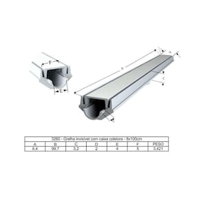 A grelha invisível oculta foi desenvolvida em alumínio fundido para ser um produto mais resistente. Seu design é a solução eficiente e moderna para captação de água, além de proporcionar ao ambiente um acabamento perfeito. O diferencial deste modelo é a caixa coletora que permite a coleta da água pluvial para o reaproveitamento da mesma, preservando o meio ambiente.