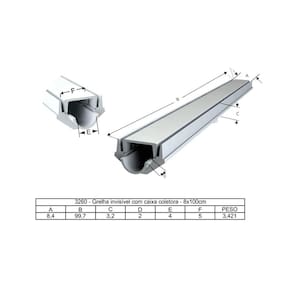 01 Grelha Invisível Oculta Caixa Coletora Cinza Piscina 100x8cm.