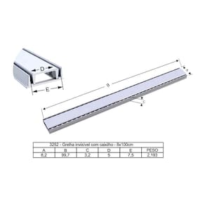 01 Grelha Linear Invisível Oculta com Caixilho Bege 100x8cm.