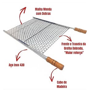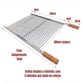 Grelha Moeda 50x50cm de Aço Inox Econômica com Ponteira DESCRIÇÃO: A Grelha Moeda Premium foi desenvolvida para quem busca máxima durabilidade e qualidade no churrasco. Com uma espessura robusta de 1,5mm na tela, essa grelha é sinônimo de resistência, proporcionando uma experiência superior para seus assados. Especificações: Largura da Grelha: 50cm Comprimento Total: 71cm incluindo cabo e ponteira Área Útil: 50cm x 50cm perfeita para diversos tipos de cortes Cabo: 13cm Ponteira: 4cm, ideal para encaixar firmemente em churrasqueiras de alvenaria ou portáteis. Características Premium: - Espessura da Tela: 1,5mm garantindo maior rigidez e longa vida útil. - Material: 100% Inox 430, oferecendo resistência à corrosão e alta durabilidade. Ideal para churrasqueiras com furos de apoio ou suportes de vidro. - Multifuncionalidade: Excelente para assar bifes, linguiças, aves, costelas, pães e vegetais, além de servir como descanso para os alimentos já preparados. - Cabos Térmicos: Feitos de madeira com revestimento de alumínio, impedem o aquecimento, garantindo segurança e conforto ao manusear. Benefícios: - Durabilidade Superior: A grelha não enferruja como outros metais, proporcionando maior vida útil. - Versatilidade: Pode ser Utilizado em qualquer tipo de churrasqueira, seja de alvenaria, portátil ou com suportes, adaptando-se perfeitamente às suas necessidades. - Acabamento Premium: O inox 430 garante não só resistência, mas também um visual moderno e sofisticado Atenção: Verifique as dimensões da sua churrasqueira antes da compra. Marca: Não Informado