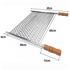 Grelha Moeda 60x48cm de Aço Inox Econômica com Ponteira DESCRIÇÃO: A Grelha Moeda Premium foi desenvolvida para quem busca máxima durabilidade e qualidade no churrasco. Com uma espessura robusta de 1,5mm na tela, essa grelha é sinônimo de resistência, proporcionando uma experiência superior para seus assados. Especificações: Largura da Grelha: 60cm Comprimento Total: 69cm incluindo cabo e ponteira Área Útil: 60cm x 48cm perfeita para diversos tipos de cortes Cabo: 13cm Ponteira: 4cm, ideal para encaixar firmemente em churrasqueiras de alvenaria ou portáteis. Características Premium: - Espessura da Tela: 1,5mm garantindo maior rigidez e longa vida útil. - Material: 100% Inox 430, oferecendo resistência à corrosão e alta durabilidade. Ideal para churrasqueiras com furos de apoio ou suportes de vidro. - Multifuncionalidade: Excelente para assar bifes, linguiças, aves, costelas, pães e vegetais, além de servir como descanso para os alimentos já preparados. - Cabos Térmicos: Feitos de madeira com revestimento de alumínio, impedem o aquecimento, garantindo segurança e conforto ao manusear. Benefícios: - Durabilidade Superior: A grelha não enferruja como outros metais, proporcionando maior vida útil. - Versatilidade: Pode ser Utilizado em qualquer tipo de churrasqueira, seja de alvenaria, portátil ou com suportes, adaptando-se perfeitamente às suas necessidades. - Acabamento Premium: O inox 430 garante não só resistência, mas também um visual moderno e sofisticado Atenção: Verifique as dimensões da sua churrasqueira antes da compra. Marca: Não Informado