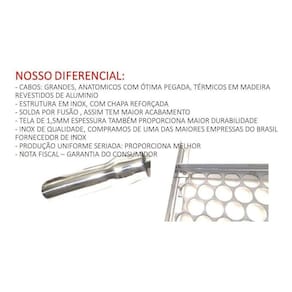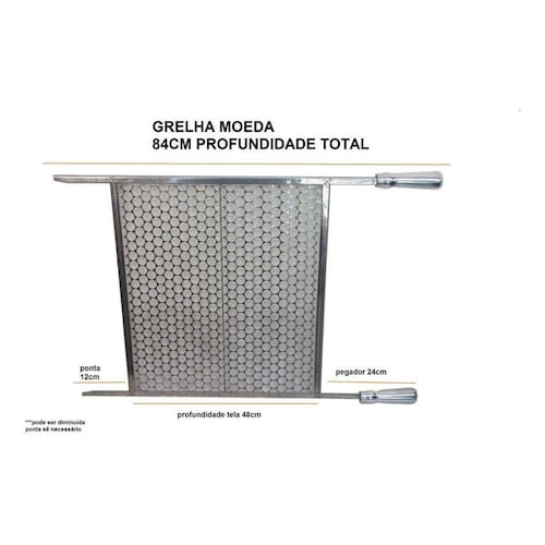 Grelha de 1,5mm espessura de tela reproduz em maior durabilidadeLargura : 50cm x 70cm prof. fora cabo 13cm A grelha moeda 100% inox é perfeita para fazer seu churrasco com bifes, linguiças , aves, costela, pão, legumes e tudo mais o que quiser assar na grelha.Pode ser utilizada direto para o preparo de assados ou para descanso dos alimentos preparados.Serve em churrasqueiras de alvenaria com furos para apoio pois possui pontas para apoiar nos tijolos , em suportes de vidro, ou qualquer apoio de grelha e também em churrasqueiras portáteis.A Tela e estrutura são em Inox e por isso não enferrujam, material de qualidade proporcionando alta durabilidade. Os cabos são térmicos confeccionados em madeira revestidos de alumínio, não esquentam.Dimensões e Características:Largura 50cm X 48cm profundidade área útil ,Largura na parte dos cabos: 54cmProfundidade total 83cm Tela: 1,5mm espessura - proporciona maior rigidez e durabilidade ao produto,Grelha inteira em inox 430: tela e estrutura,Cabos de madeira revestidos de alumínio,Observações:Verificar o espaço de sua churrasqueira antes da compra, largura e profundidade, Se comprar junto os suportes apoio de grelha escolher uma grelha 3cm menor que a largura da churrasqueira