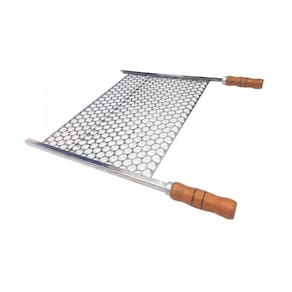 Grelha Moeda Inox 60x48 Para Churrasco Cabo Madeira E Ponteira