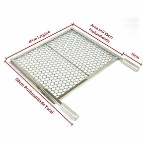 Grelha inteira em inox 430 tela e estrutura sem a possibilidade de enferrujar como outros metais.