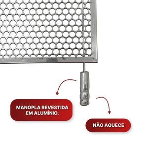 Grelha fabricado em aço inox de excelente qualidade e durabilidade. Funciona perfeitamente na churrasqueira de alvenaria. Diferente das demais, a Grelha Moeda Bem Grill conta com estrutura reforçada e tela grossa. Seu quadro fabricado em perfil U garante maior resistência e durabilidade. Com pinos traseiros de encaixe. Pode ser utilizada com variados tipos de carnes, pães e peixes.