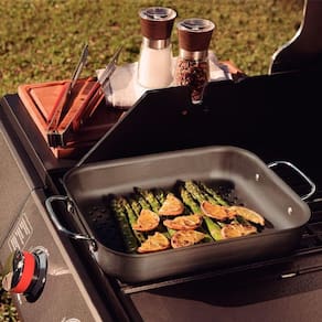 Para preparar uma refeição deliciosa e suculenta, conte com a Grelha Retangular Tramontina Churrasco em Alumínio Anodizado 28 cm. Ela é perfeita para grelhar legumes e peixes e ideal para o uso em churrasqueiras. Ela é produzida em alumínio anodizado, o que garante maior resistência à abrasão e à altas temperaturas. Além disso, ela ainda é resistente, durável e muito fácil de limpar. A escolha perfeita para dar um toque especial ao seu churrasco! Grelha de alumínio anodizado. Alças de aço carbono cromado.