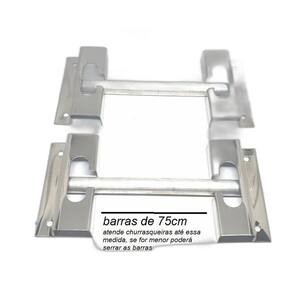 Observações: Verifique o espaço da sua churrasqueira, profundidade e largura. As barras atendem churrasqueiras até 75cm, sendo menor poderá serrá-las. Os suportes das barras podem ser fixados vertical ou horizontal nas paredes da churrasqueira.