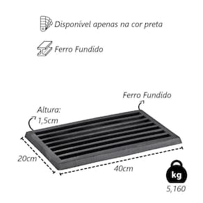 Grelha Para Cinzeiro Fogão a Lenha em Ferro Fundido 20x40cm