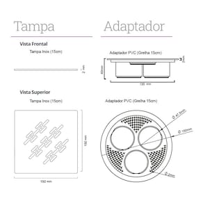 Dimensões AxLxP (mm):Adaptador para Fecha Ralo: 40x135x135; Grelha: 2x150x150Cor: GoldMaterial: Adaptador para Fecha Ralo em PVC e Grelha em Aço Inox 304Garantia: 5 anos junto ao fabricanteReferência: 4027Formato: QuadradoCompatibilidade: Compatível com saídas de 50mm, 100mm e 150mm e caixa sifonadaFecha Ralo (previne o retorno de insetos pela tubulação): SimSugestão de Uso: Ideal para salas de banho e banheiros em geral.Processo de Coloração da Tampa: PVDLocal de Uso: Interno O que vem na caixa:1 Grelha em Aço Inox 3043 Fecha Ralo1 Adaptador em PVC para o Fecha Ralo