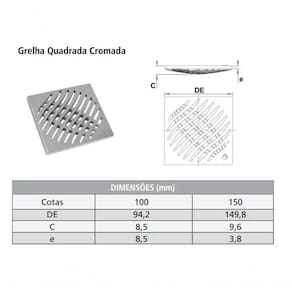 Grelha para ralo de quintal: para filtrar as impurezas da água da chuva. ;Grelha para ralo de banheiro: para filtrar resíduos e evitar entupimentos. ;Grelha para ralo de área externa: para áreas úmidas, como piscinas e saunas. ;INFORMAÇÕES TÉCNICAS
