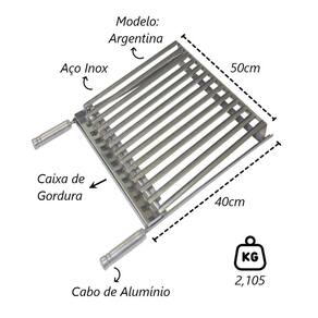 Grelha Parrilha Argentina Aço Inox com Caixa Gordura 50x40cm