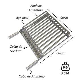 Grelha Parrilha Argentina Aço Inox com Caixa Gordura 50x60cm