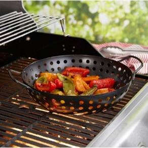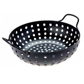 Panela Wok para Grelhar em Churrasqueira Prana Preta Graças ao formato da Assadeira Wok Prana Antiaderente 28cm, agora ficará super fácil revirar os alimentos na panela, para que sejam grelhados por igual. - Maravilhosa para camarões grelhados com legumes, mix de frutos do mar, etc.