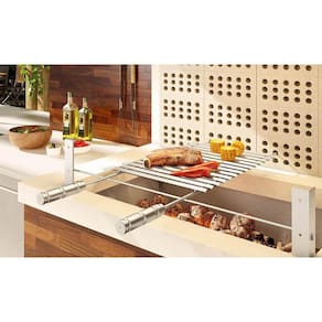 Produto ideal para o preparo de carnes, e excelente para cortes especiais Uruguaios e Argentinos. Produzida em aço inox 430 com revestimento strike, enorme aderencia no inox, não descasca nem inferruja. Acabamento perfeito. Grelha estilo parrilla com canaletas em ''v'', caimento. Pode ser utilizados utensílios de inox.