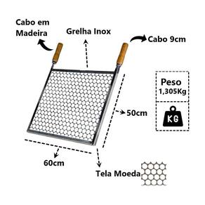 Grelha Retangular Inox Tela Moeda Para Churrasqueira 60x50cm