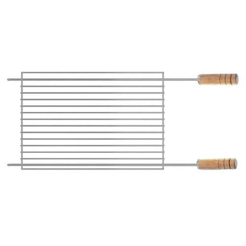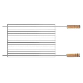 Componente exclusivo para as séries: Kit, Kit Suporte e Garden da Giragrill. Grelha Tradicional de arames da linha Inox, com proteção lateral para grelhar ou deixar espetos de churrasco em descanso na parte superior do kit. Cabos revestidos em alumínio. - Feita em aço inox, com cabos de madeira. - Muito resistente. - Grelha tradicional de arames com proteção lateral para grelhar ou deixar espetos de churrasco em descanso na parte superior do kit. CARACTERÍSTICAS Material: Estrutura em aço inox 304 e cabos de madeira marfim Peso Líquido: 1,52 kg Peso Bruto: 1,95 kg Medidas do Produto: C 62,0 x A 3,7 x P 27,4 cm Medidas da Embalagem: C 63,0 x L 28,0 x A 4,0 cm