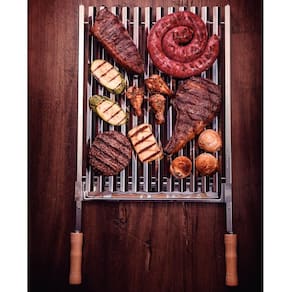 Grelha Tramontina Churrasco Grelhados Legumes 50x41cmAço Inox Cabo de Madeira