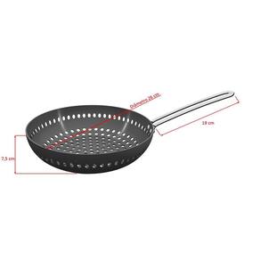 Com a Grelha Wok Furada Tramontina você tem a melhor opção para lhe auxiliar no seu churrasco. Ela é indicada para uso em churrasqueiras e ideal para grelhar legumes, peixes e petiscos, permitindo assim, que você sirva um churrasco com maior variedade de alimentos e com um preparo muito mais fácil. Seu material é resistente à abrasão e à altas temperaturas e seu cabo em aço inox irá lhe auxiliar no manuseio. A escolha perfeita para tornar o seu almoço em família, ainda mais gostoso e especial! MATERIAL Grelha de alumínio anodizado com maior resistência a altas temperaturas. Cabo de aço inox. Ideal para grelhar abobrinhas, berinjelas, frangos, peixes e petiscos. ITEN INCLUSOS 01 Grelha Wok Furada Tramontina Churrasco em Alumínio Anodizado com Cabo 26 cm ORIENTAÇÕES Ao utilizar utensílios quentes, tenha cuidado redobrado. Utilize proteção para as mãos e mantenha-os fora do alcance das crianças. Não utilize a grelha sobre o carvão ou em contato direto com brasas. A exposição ao calor e gordura poderá resultar na alteração de cor do produto. Este produto não pode sofrer modificações. Limpeza: antes do primeiro e após cada uso lave sempre com esponja, sabão neutro ou detergente líquido e seque logo após cada lavagem. Para descarte dos produtos e embalagens siga as orientações de reciclagem vigentes. Este produto não necessita de manutenção, apenas limpeza. GARANTIA 90 dias para vícios ou defeitos de fabricação. Ean: 7891112279070