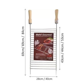 Grelha tubinho em alumínio Práticas, versáteis e resistentes, as grelhas, espetos e acessórios mahil gourmet são de fácil conservação. O alumínio de alta qualidade exige apenas cuidados básicos e rotineiros. Com a limpeza adequada, é possível preservar sua durabilidade. Diferencial: Excelente custo x beneficio sendo uma grelha de extrema qualidade, durabilidade e praticidade. Pode permanecer de maneira permanente em áreas externas exposto a intempéries, pois não possui nenhum componente que enferruja. Instruções de uso: Para a limpeza usar apenas sabão neutro e esponja macia, não é recomendado produtos abrasivos. Antes do primeiro uso, lavar o produto para remover os resíduos de polimento. Não expor diretamente sobre a chama, usar apenas sobre o braseiro. Para maior facilidade na limpeza e segurança lavar o produto somente após o resfriamento.
