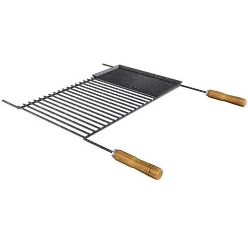 Grelha Uruguaia Esmaltada Preta para Churrasco com Chapa Auxiliar Barra Redonda Qualinox.