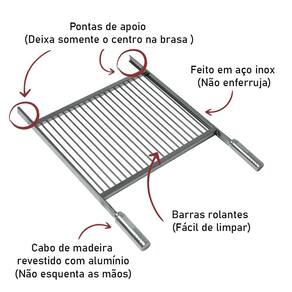 Grelha parrilla uruguaia para churrasqueira é prática e muito fácil de limpar é feita com barras de inox maciças, aumentando sua qualidade e durabilidade. Sua utilização é muito versátil, pode ser utilizada tanto para assar como para grelhar carnes e outros alimentos., pois seu acabamento é eficaz, resistente, moderno e prático, trazendo assim mais qualidade para seu churrasco