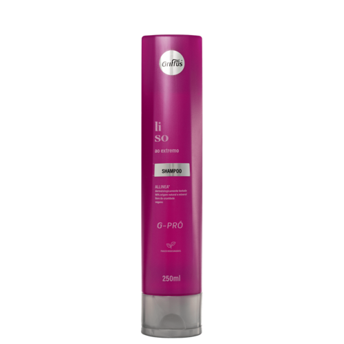O Shampoo Griffus G-Pró Liso Ao Extremo conta com tecnologia Allinea®, que atua deixando os cabelos profundamente hidratados, macios, sem volume, sem frizz e com muito brilho.