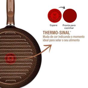 Grill Antiaderente Resist 5X Redondo Expert 30cm Rochedo Antiaderente Resist 5X da linha Rochedo Expert, reforçado com partículas minerais, oferece uma durabilidade excepcional. Com o Grill Redondo Rochedo Expert Chocolate 30cm, você trará modernidade e qualidade à sua cozinha, surpreendendo sua família.