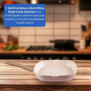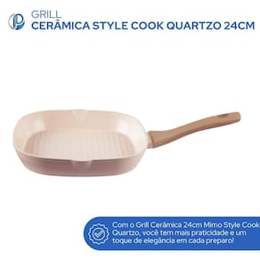 Diâmetro: 24 cm. Revestimento cerâmico antiaderente. Superfície com ranhuras para grelhar. Corpo em alumínio de alta qualidade. Cabo anatômico com toque suave. Livre de PFOA e substâncias tóxicas. Compatível com fogões a gás, elétricos e vitrocerâmicos.Termostato regulável