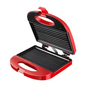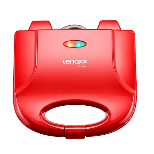 Grill e Sanduicheira Lenoxx Easy Red com chapas antiaderentes, alça isotérmica, luz indicadora de funcionamento, ideal para preparar sanduíches e grelhados de forma saudável e uniforme.Funciona como grill
