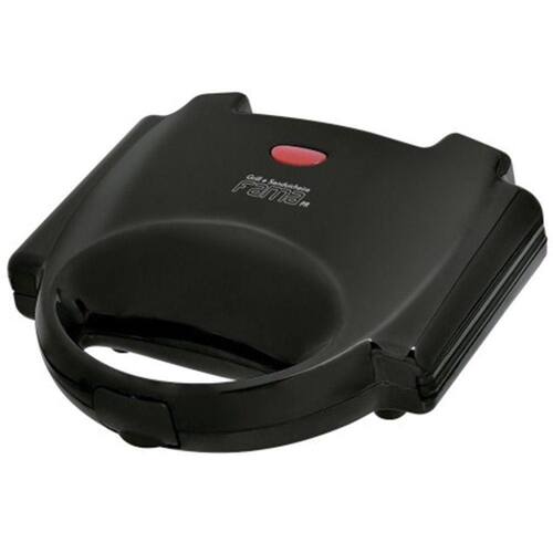 Funciona como grill e sanduicheira. Faz 2 sanduiches de uma vez e Grelha hamburgueres, carnes, peixes e vegetais.