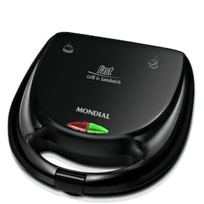 A sanduicheira fast grill s-12 da mondial é 2 em 1, eficiente e versátil, pode ser utilizado como grill e sanduicheira, mais praticidade durante o preparo de carnes, frangos, peixes, sanduiches e vegetais. Possui grelhas duplas onduladas e antiaderentes e acabamento em aço inox. Aliás, excelente grelha antiaderente, aquece rapidamente e pode grelhar os alimentos dos dois lados sem adição de óleo ou manteiga. Conta ainda com alça isotérmica com trava de fechamento e lâmpadas que indicam o seu funcionamento. A sanduicheira permite perfeita acomodação dos alimentos em seu interior. Com 750w de potência tem mais agilidade no preparo dos alimentos. Ah isso sem esquecer do controle de temperatura automático que garante resultados perfeitos para os seus grelhados ou sanduíches. Tudo isso em uma linda e moderna cor preta. A sanduicheira foi projetada para proporcionar alta performance, sendo a melhor opção para quem busca praticidade.