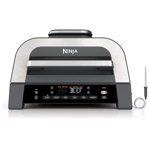 Conheça o Ninja Foodi Smart XL Grill: Atualizado, com design elegante e as mesmas funções e benefícios. Grill de bancada indoor e Fritadeira a Ar com o Sistema de Cozimento Inteligente e Termômetro.