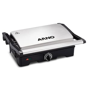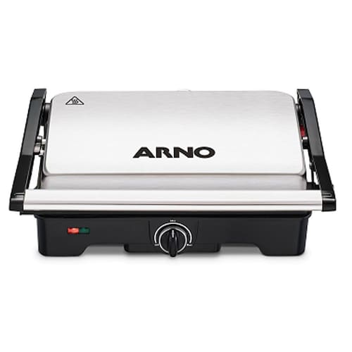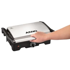 prático, portátil e muito eficiente, o grill arno dual gnox tem todas as características para deixar o seu dia a dia muito mais saboroso e saudável. Prepare carnes e legumes grelhados em questão de minutos. Ele tem coletor de gordura, para que você e sua família apreciem os alimentos sequinhos e deliciosos com abertura de até 180º, as duas placas, inferior e superior, são aquecidas, permitindo que ele seja utilizado tanto aberto quanto fechado, sendo que a placa superior se ajusta a altura do alimento, para um melhor resultado do seu grelhado. Moderno, na cor inox, tem capacidade para fazer até 4 hambúrgueres e você controla a temperatura através do termostato, para o grelhado chegar no ponto ideal que você tanto gosta. O grill arno dual gnox possui luz piloto que indica o funcionamento do produto, além disso, vem com alça fria e trava lateral, que garantem maior segurança no manuseio durante o preparo de seus grelhados. Escolha seus ingredientes favoritos e tenha refeições mais saudáveis. Garanta já o seu